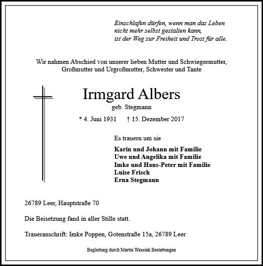 Irmgard Albers geb. Stegmann
