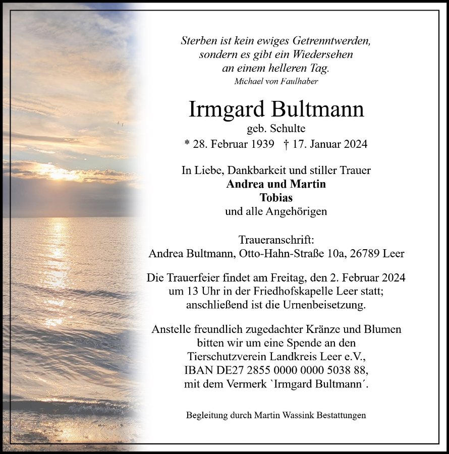 Irmgard Bultmanngestorben am 17. Januar 2024