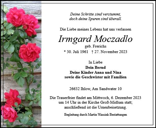 Irmgard Moczadlo geb. Frerichs
