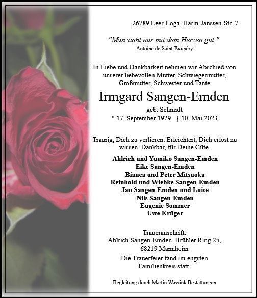 in diesen Tagen fühlen wir mit Ihnen und wünschen Ihnen von Herzen, dass Sie aus den glücklichen Erinnerungen Kraft schöpfen, um positiv in die Zukunft zu gehen. Diese Gedenkseite möge Ihnen dabei helfen, Ihre Trauer zu teilen und das Andenken gemeinsam wachzuhalten.
