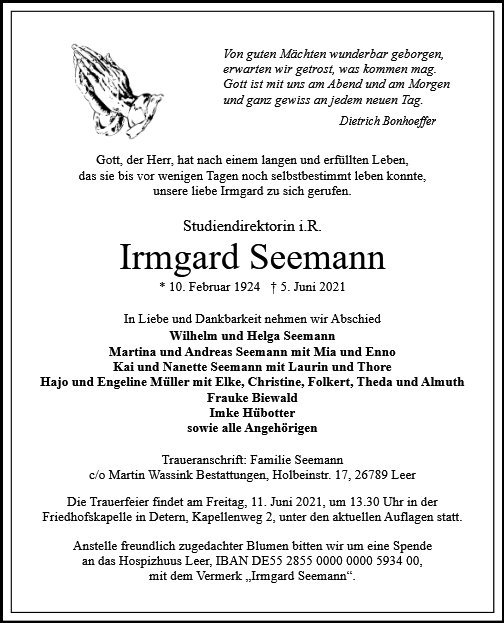 gestorben am 5. Juni 2021 in Leer