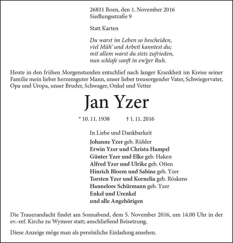 gestorben am 1. November 2016 in Bunde