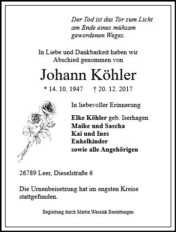 geboren am 14. Oktober 1947 in Collinghorst, jetzt Rhauderfehn