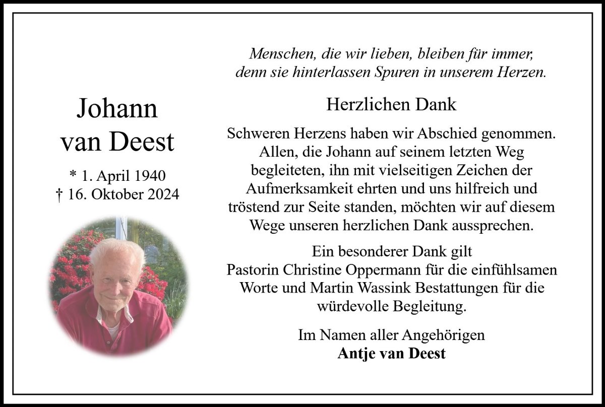 geboren am 1. April 1940 in Völlen, jetzt Westoverledingen