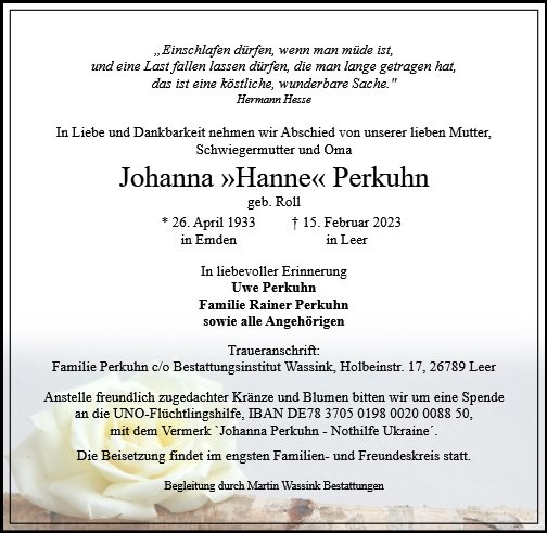 in diesen Tagen fühlen wir mit Ihnen und wünschen Ihnen von Herzen, dass Sie aus den glücklichen Erinnerungen Kraft schöpfen, um positiv in die Zukunft zu gehen. Diese Gedenkseite möge Ihnen dabei helfen, Ihre Trauer zu teilen und das Andenken gemeinsam wachzuhalten.