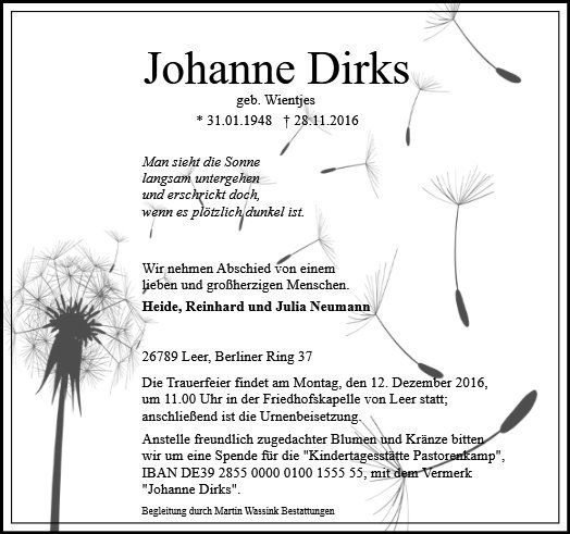 Johanne Dirks geb. Wientjes