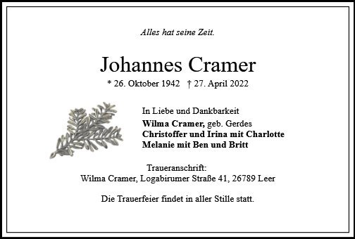 gestorben am 27. April 2022 in Leer
