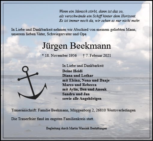 gestorben am 7. Februar 2021 in Westoverledingen