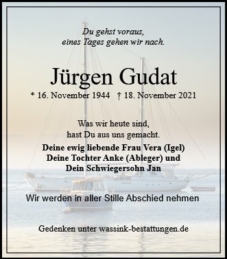 geboren am 16. November 1944 in Kleingnie