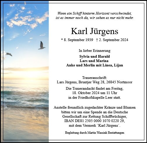 geboren am 8. September 1939 in Langefeld Kreis Aurich