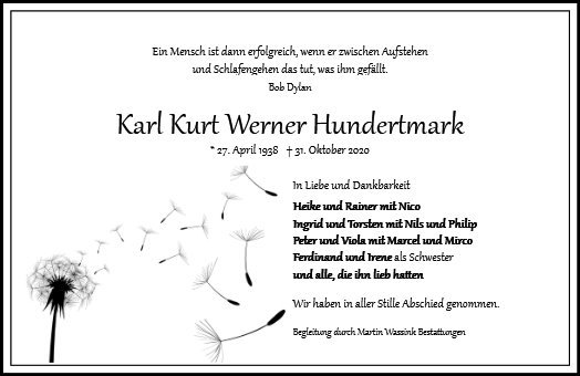 wir wünschen Ihnen für die kommende Zeit viel Kraft und dass es Ihnen gelingt, dankbar auf die positiven Erinnerungen zurückzublicken. Diese Gedenkseite möge Ihnen dabei helfen, Ihre Trauer zu teilen und das Andenken gemeinsam wachzuhalten.