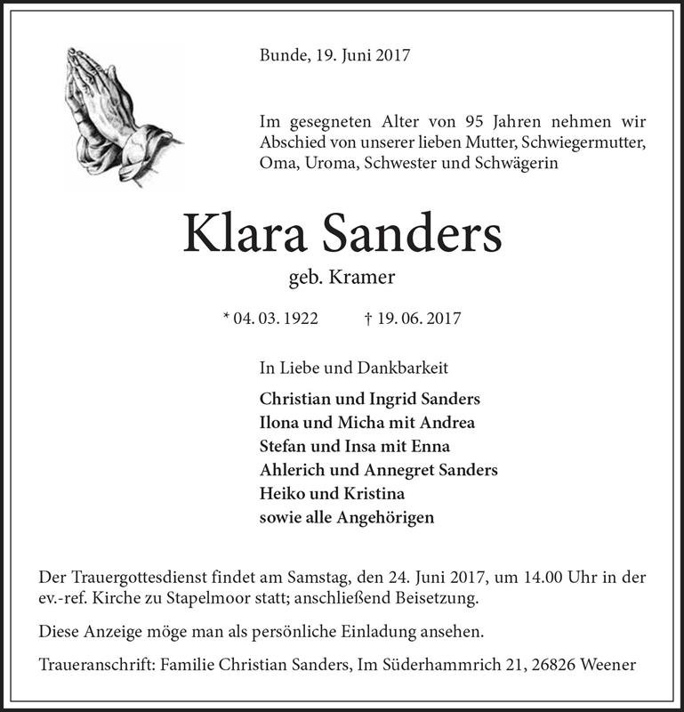 gestorben am 19. Juni 2017 in Bunde