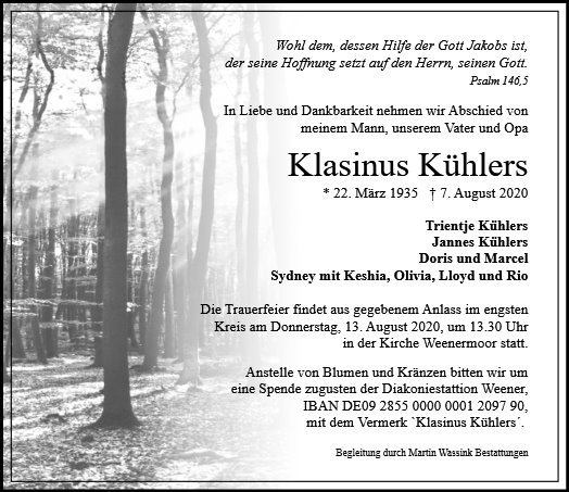 gestorben am 7. August 2020 in Bunde