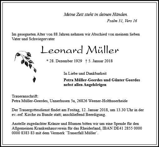 gestorben am 5. Januar 2018 in Weener