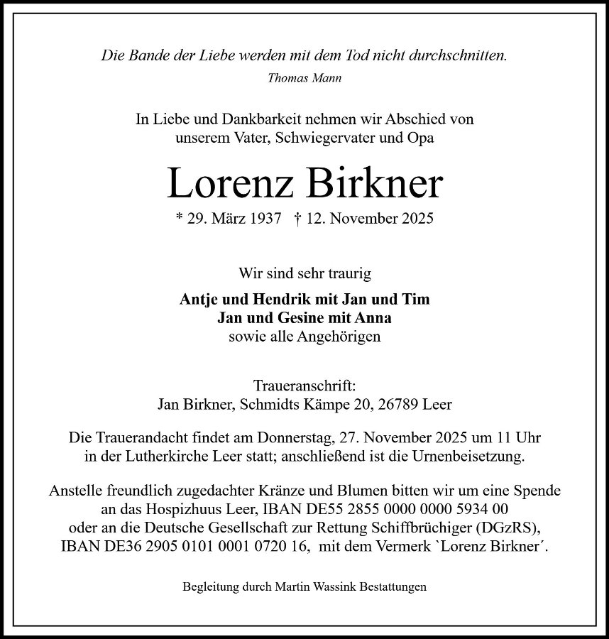 gestorben am 12. November 2025 in Leer
