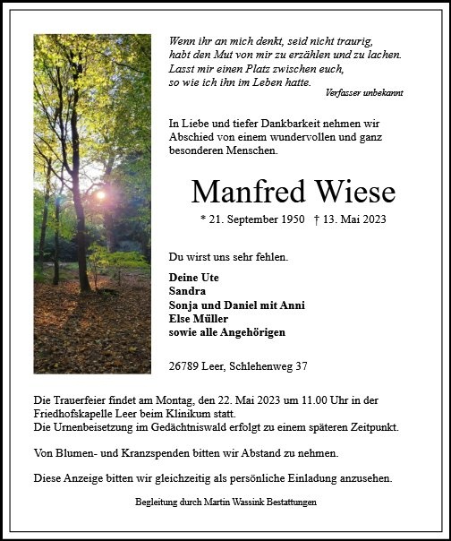 gestorben am 13. Mai 2023 in Leer