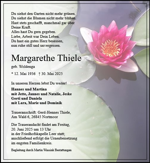 gestorben am 30. Mai 2025 in Leer