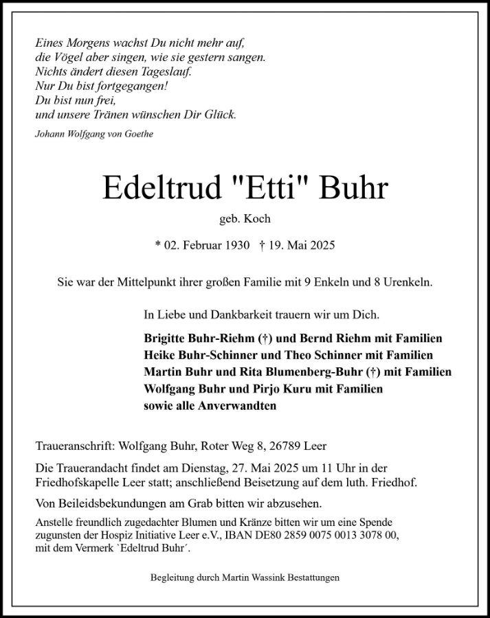 Edeltrud Buhrgestorben am 20. Mai 2025