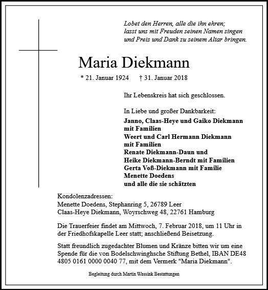 geboren am 21. Januar 1924 in Völlenerfehn, jetzt Westoverledingen