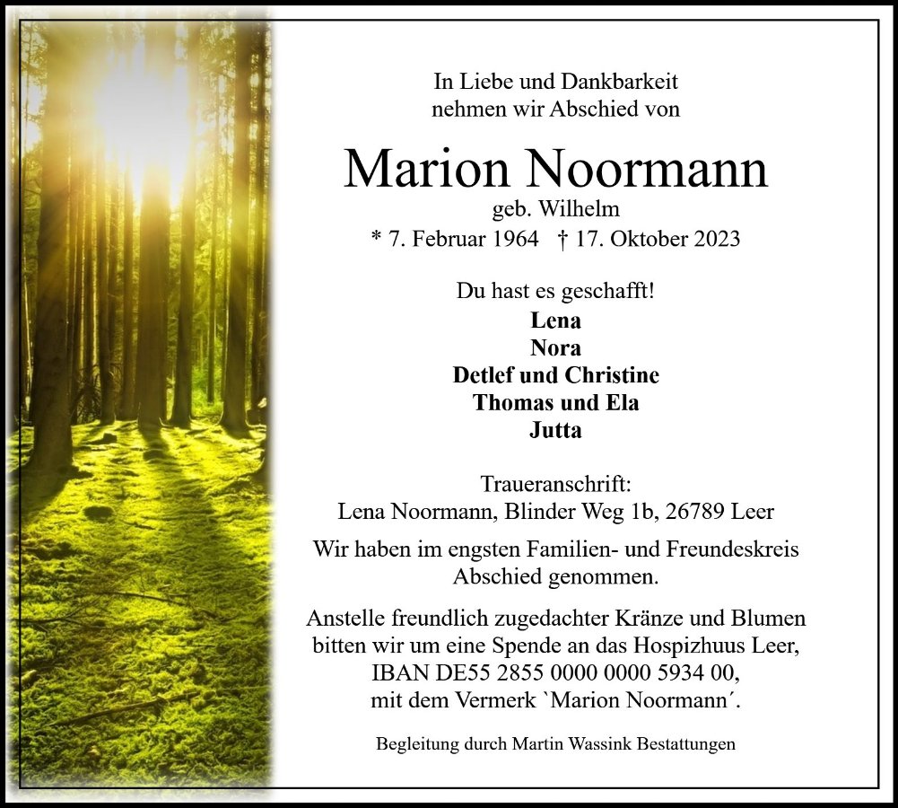 Marion Noormanngestorben am 17. Oktober 2023