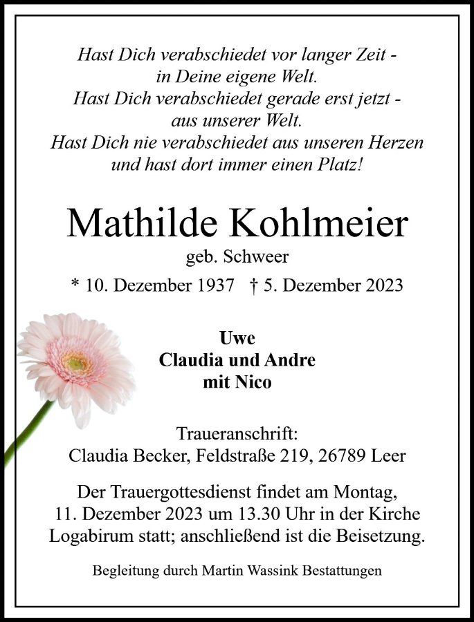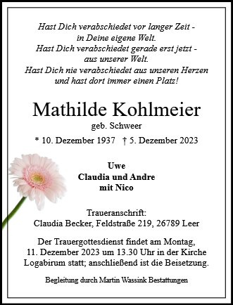 Mathilde Kohlmeier geb. Schweer