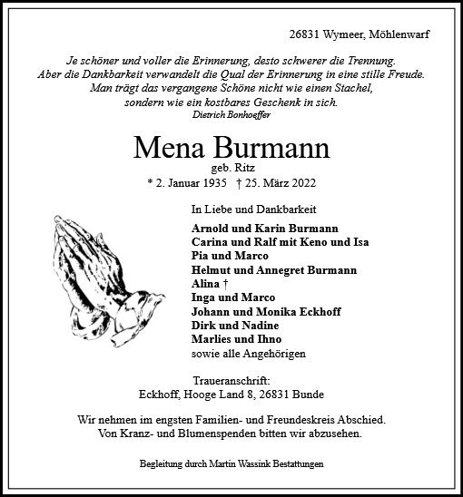 in diesen Tagen fühlen wir mit Ihnen und wünschen Ihnen von Herzen, dass Sie aus den glücklichen Erinnerungen Kraft schöpfen, um positiv in die Zukunft zu gehen. Diese Gedenkseite möge Ihnen dabei helfen, Ihre Trauer zu teilen und das Andenken gemeinsam wachzuhalten.