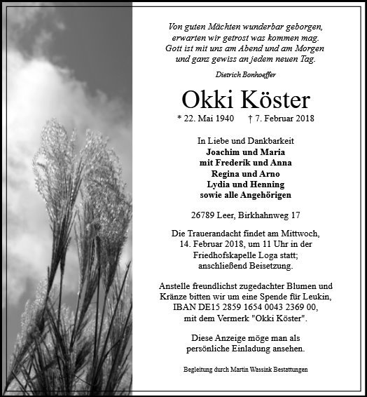 geboren am 22. Mai 1940 in Loga, jetzt Leer