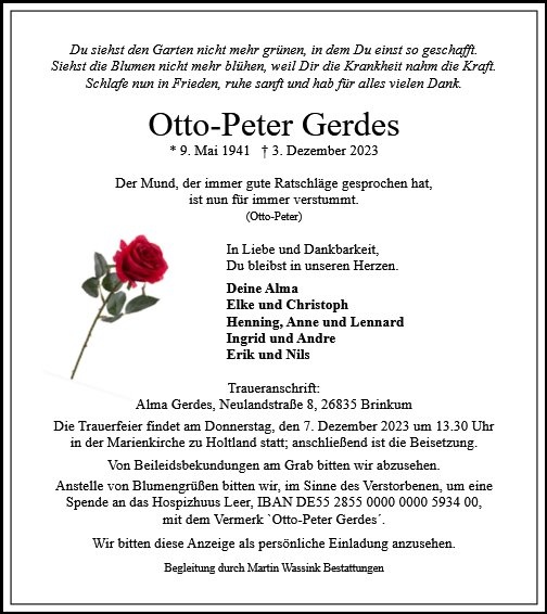 in diesen Tagen fühlen wir mit Ihnen und wünschen Ihnen von Herzen, dass Sie aus den glücklichen Erinnerungen Kraft schöpfen, um positiv in die Zukunft zu gehen. Diese Gedenkseite möge Ihnen dabei helfen, Ihre Trauer zu teilen und das Andenken gemeinsam wachzuhalten.