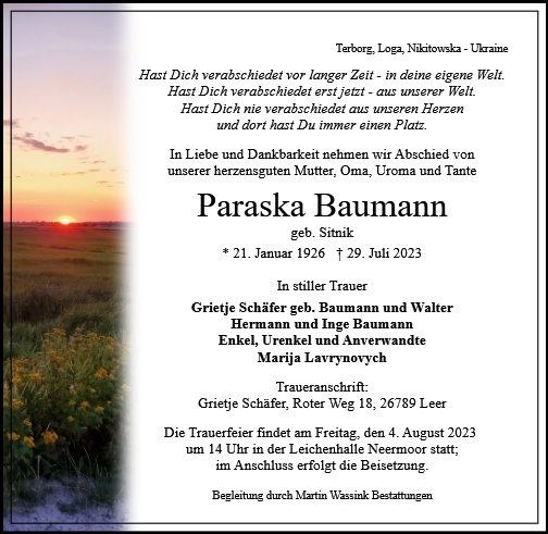 Paraska Baumann geb. Sitnik