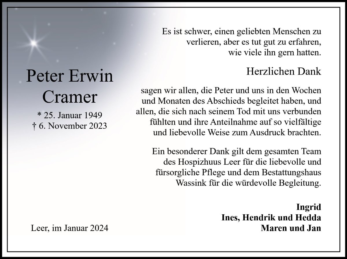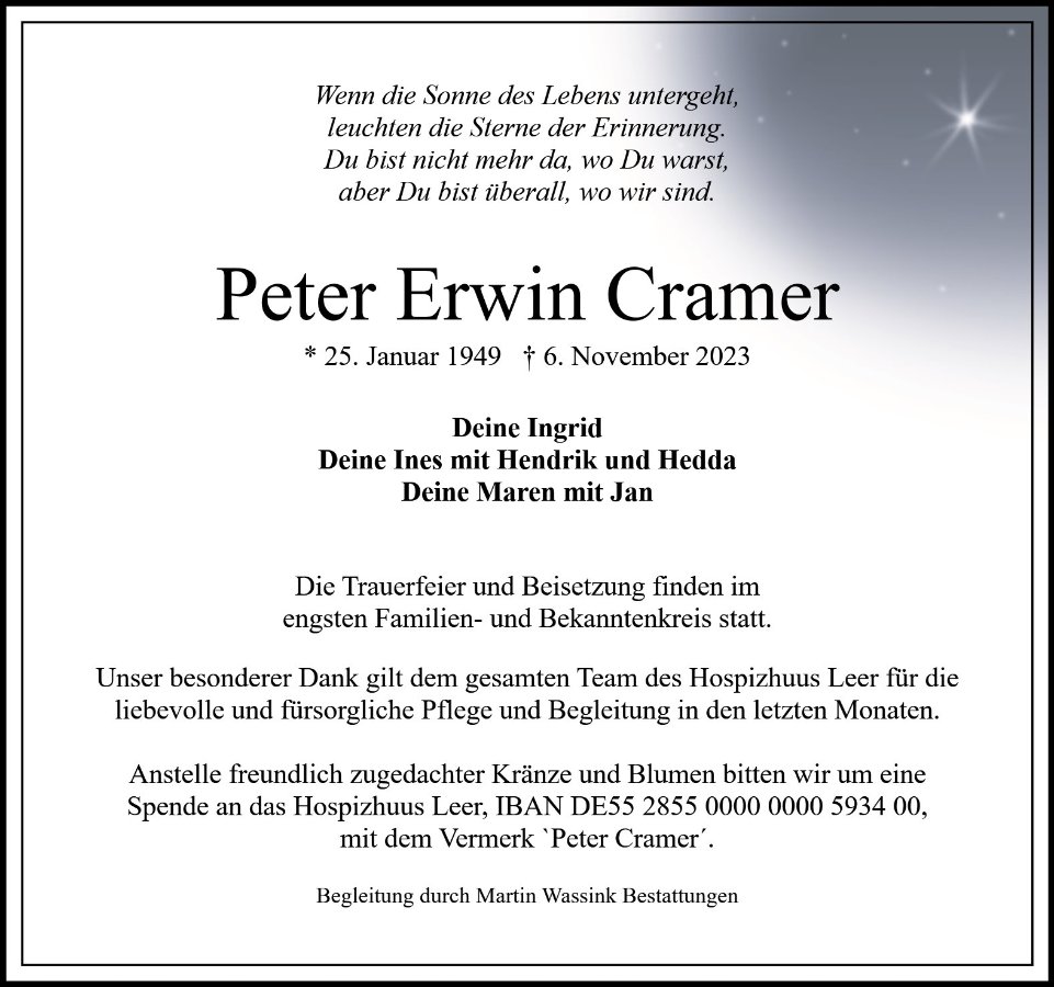 Peter Cramergestorben am 6. November 2023
