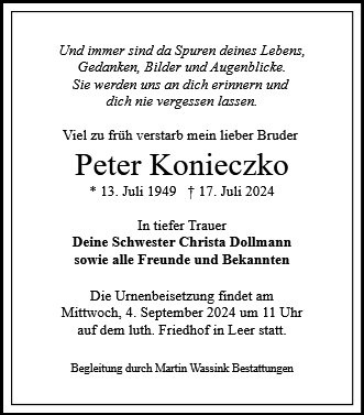Trauerfeier inkl Beisetzung, Luth. Friedhof Leer