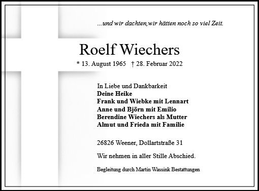 wir wünschen Ihnen für die kommende Zeit viel Kraft und dass es Ihnen gelingt, dankbar auf die positiven Erinnerungen zurückzublicken. Diese Gedenkseite möge Ihnen dabei helfen, Ihre Trauer zu teilen und das Andenken gemeinsam wachzuhalten.