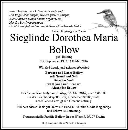 Sieglinde Bollow geb. Reining