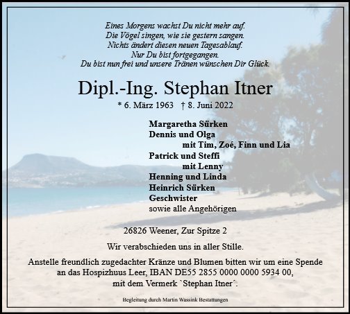 Wir sind unendlich traurig, heute nicht persönlich Abschied von Stephan nehmen zu können, wir vermissen Stephan!