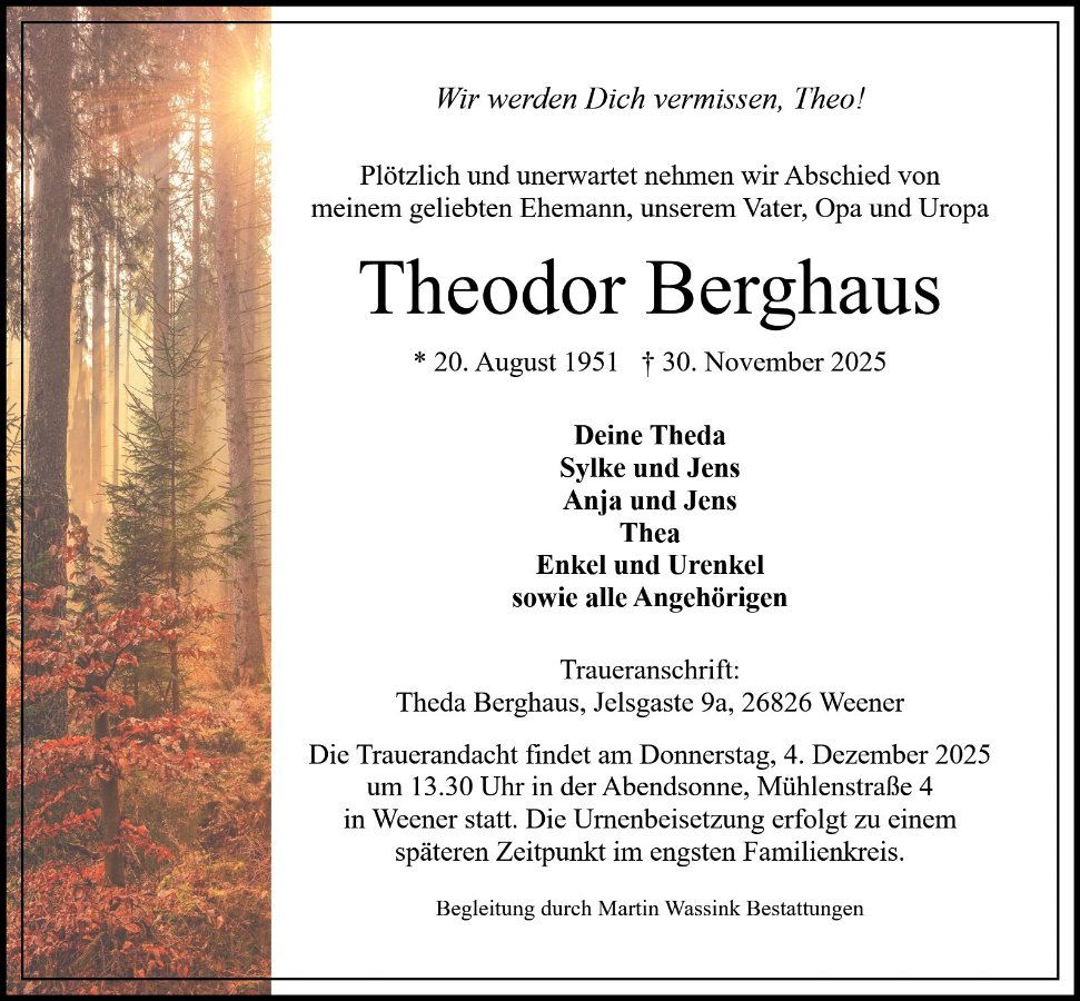 Theodor Berghausgestorben am 30. November 2025