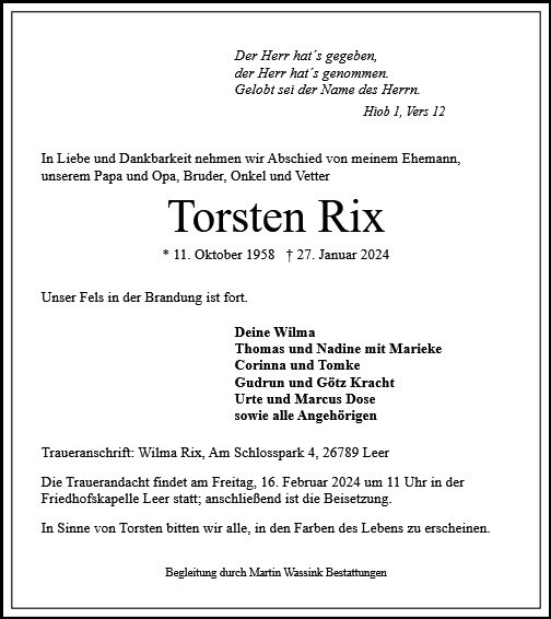 wir wünschen Ihnen von Herzen viel Kraft, dass Sie Menschen um sich haben, die Ihnen in dieser schweren Zeit beistehen und Halt geben. Zusätzlich können Sie auf dieser Gedenkseite Erinnerungen teilen und so das Andenken gemeinsam wachhalten.