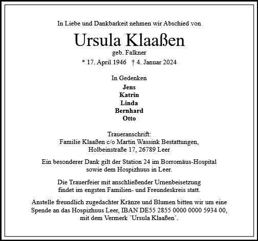 Ursula Klaaßen geb. Falkner