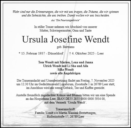 wir wünschen Ihnen von Herzen viel Kraft, dass Sie Menschen um sich haben, die Ihnen in dieser schweren Zeit beistehen und Halt geben. Zusätzlich können Sie auf dieser Gedenkseite Erinnerungen teilen und so das Andenken gemeinsam wachhalten.