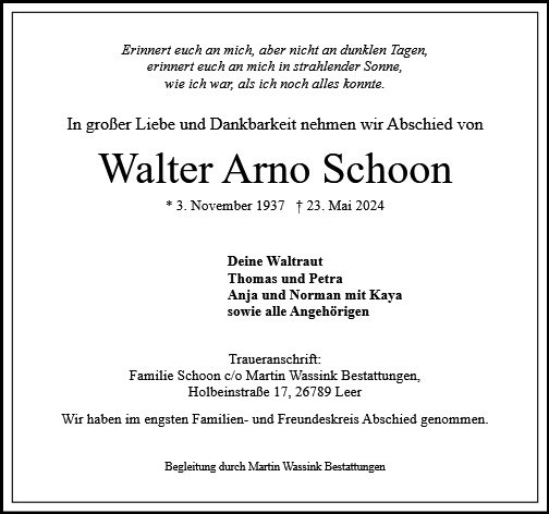 wir wünschen Ihnen für die kommende Zeit viel Kraft und dass es Ihnen gelingt, dankbar auf die positiven Erinnerungen zurückzublicken. Diese Gedenkseite möge Ihnen dabei helfen, Ihre Trauer zu teilen und das Andenken gemeinsam wachzuhalten.
