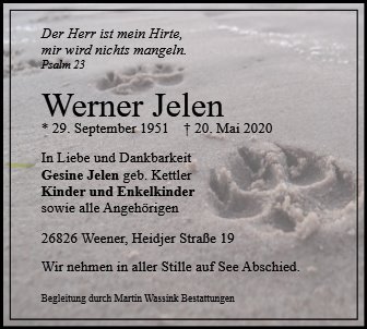 Unser aufrichtiges Mitgefühl für alle Menschen,welche Werner nahe standen ! Insbesondere seiner ganzen Familie. Wir sind sehr tief betroffen und können das alles nicht in Worte fassen. Seinen Liebsten viel Kraft für die schwere Zeit ! Michael Jelen und Familie