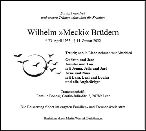 gestorben am 14. Januar 2022 in Leer