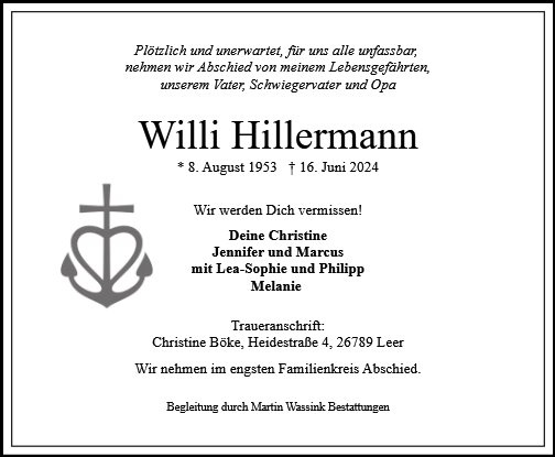 gestorben am 16. Juni 2024 in Leer